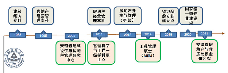 学校是国内率先设立房地产开发与管理专业的高等院校之一,对区域房地产市场的高速增长发挥了关键的促进作用。自1985年起,学校便开设了“房地产经营管理”专科课程,随后于2011年正式招收全日制本科生。2012年,根据教育部《普通高等学校本科专业目录》的更新,对专业名称、学科门类进行了优化调整,将专业名称更改为“房地产开发与管理”。2020年,入选国家级一流专业建设点。