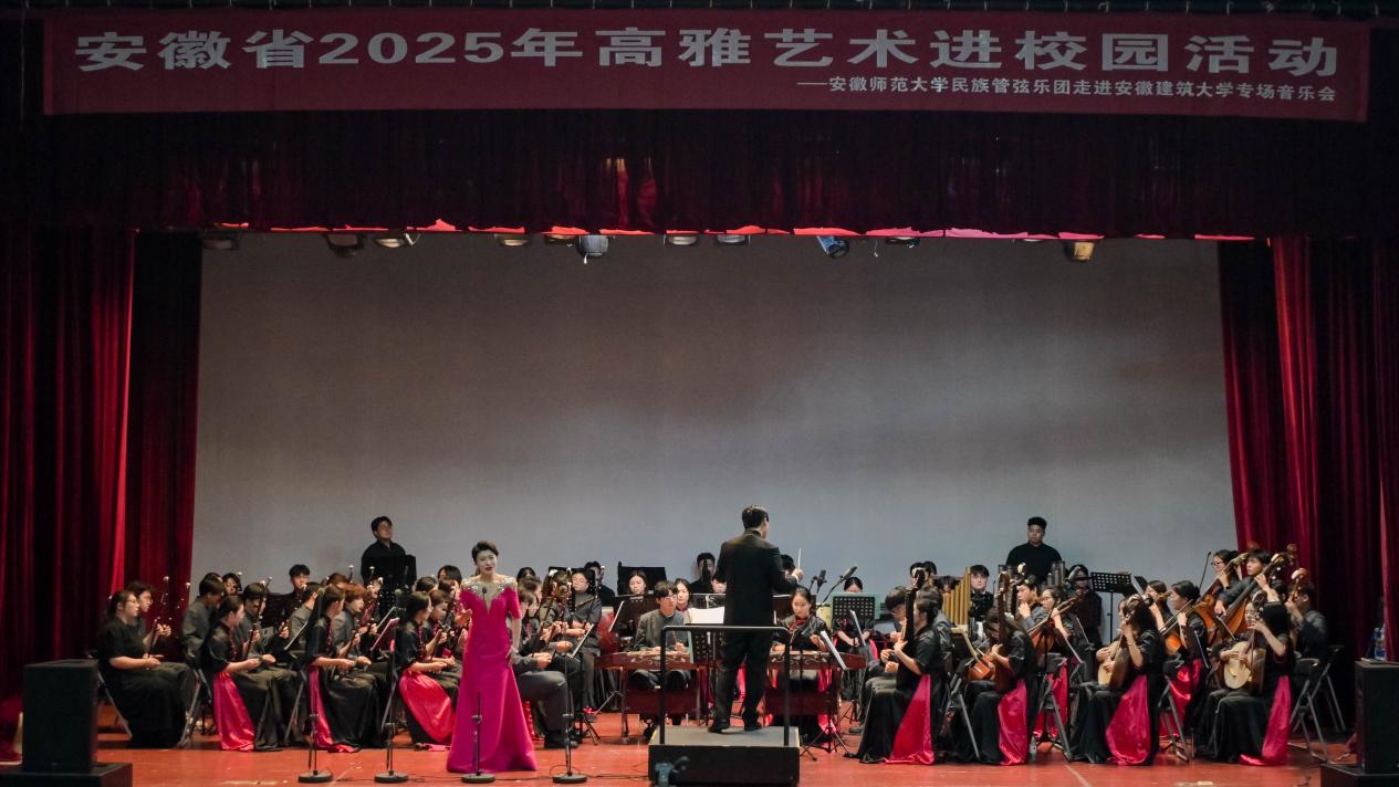 本网讯  近日,由安徽省教育厅主办的“安徽省2025年高雅艺术进校园活动”在学校大学生活动中心顺利举办。安徽师范大学民族管弦乐团受邀为现场400余名师生带来了一场高雅的视听盛宴。