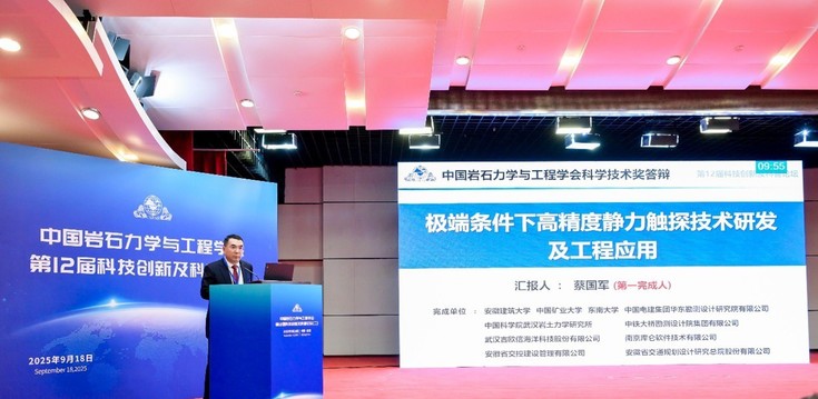 本网讯 10月17日至19日,CHINA ROCK 2025第二十二次中国岩石力学与工程学术年会在雄安新区顺利召开。在大会闭幕式上,隆重颁发了第十六届“中国岩石力学与工程学会科学技术奖”。蔡国军教授牵头申报的“极端条件下高精度静力触探技术研发及工程应用”项目,荣获科学技术进步一等奖。
