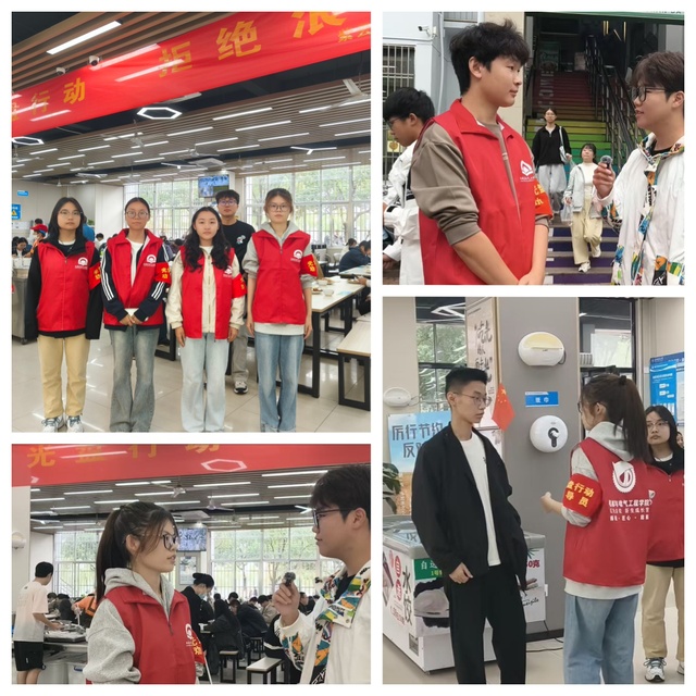 午餐时分,食堂里多了一批特殊的“餐饮浪费劝导员”。“同学,请按需取餐”“餐后请记得送还餐盘”。新生志愿者们友善地引导同学们践行“光盘行动”,自觉维护就餐秩序。“站在这个岗位上,才深切感受到文明就餐需要每个人的共同努力,”正在执勤的志愿者2025级测控技术与仪器专业康倩倩同学表示,“这不仅是一次志愿服务,更是一堂生动的品德教育课。”